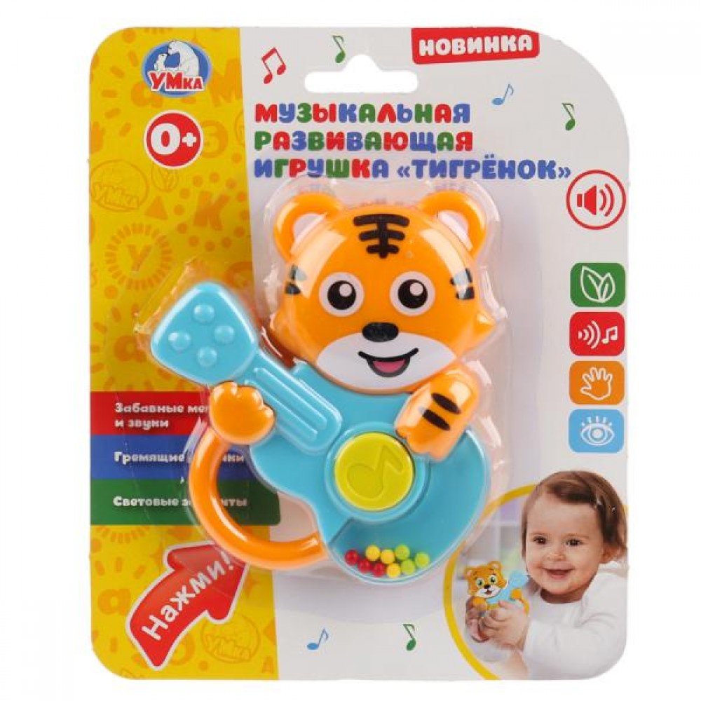 Развивающая игрушка «Музыкальная погремушка. Тигрёнок» ТМ «УМка» – сразу 6 в 1: