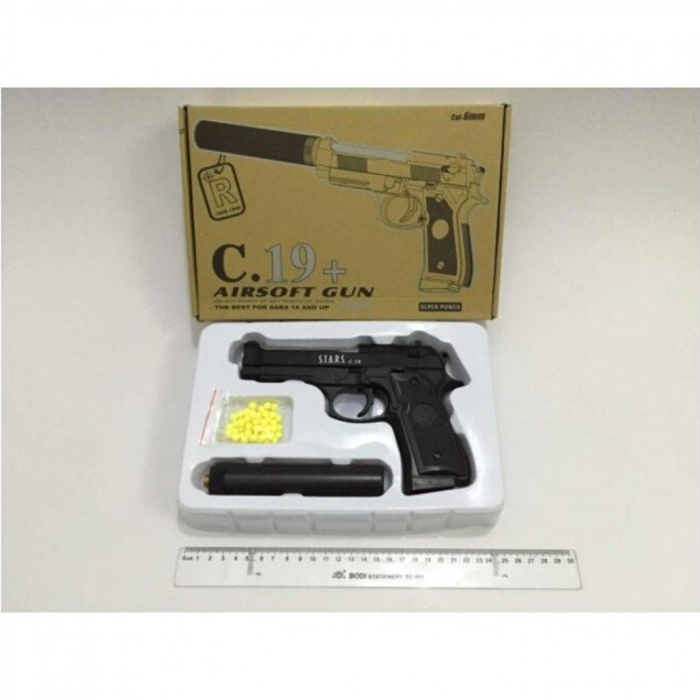 297114 Пистолет металл., съемный магазин, с глушителем в кор. в кор.36шт