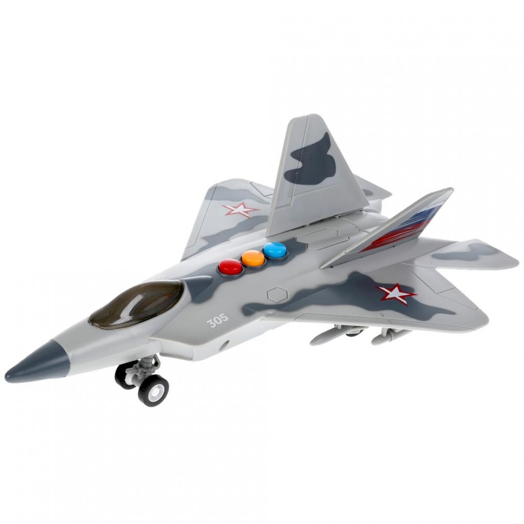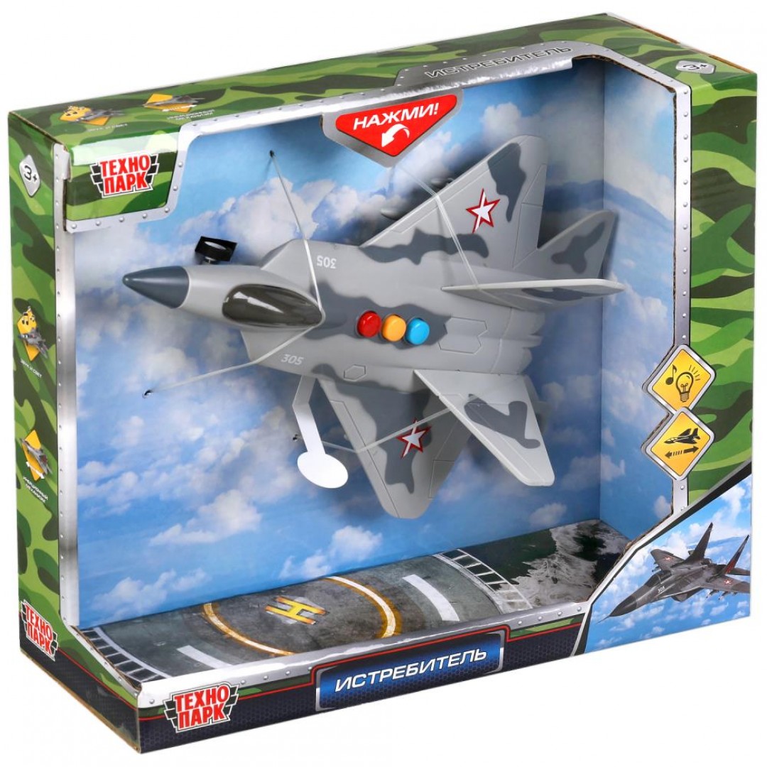 - инерционный механизм (поставьте истребитель на ровную поверхность, потяните назад, отпустите - и он тут же быстро поедет вперёд)