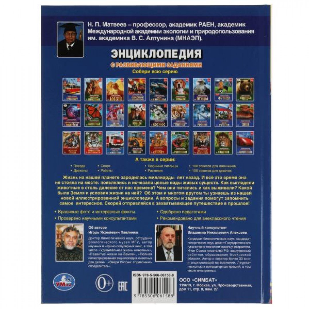 Эта занимательная энциклопедия расскажет юному читателю о том, какие животные когда-то населяли нашу планету и что послужило причиной их исчезновения. Зрелищные картинки и удивительные факты увлекут ребёнка и помогут ему быстро, эффективно и с удовольствием усвоить новую информацию.