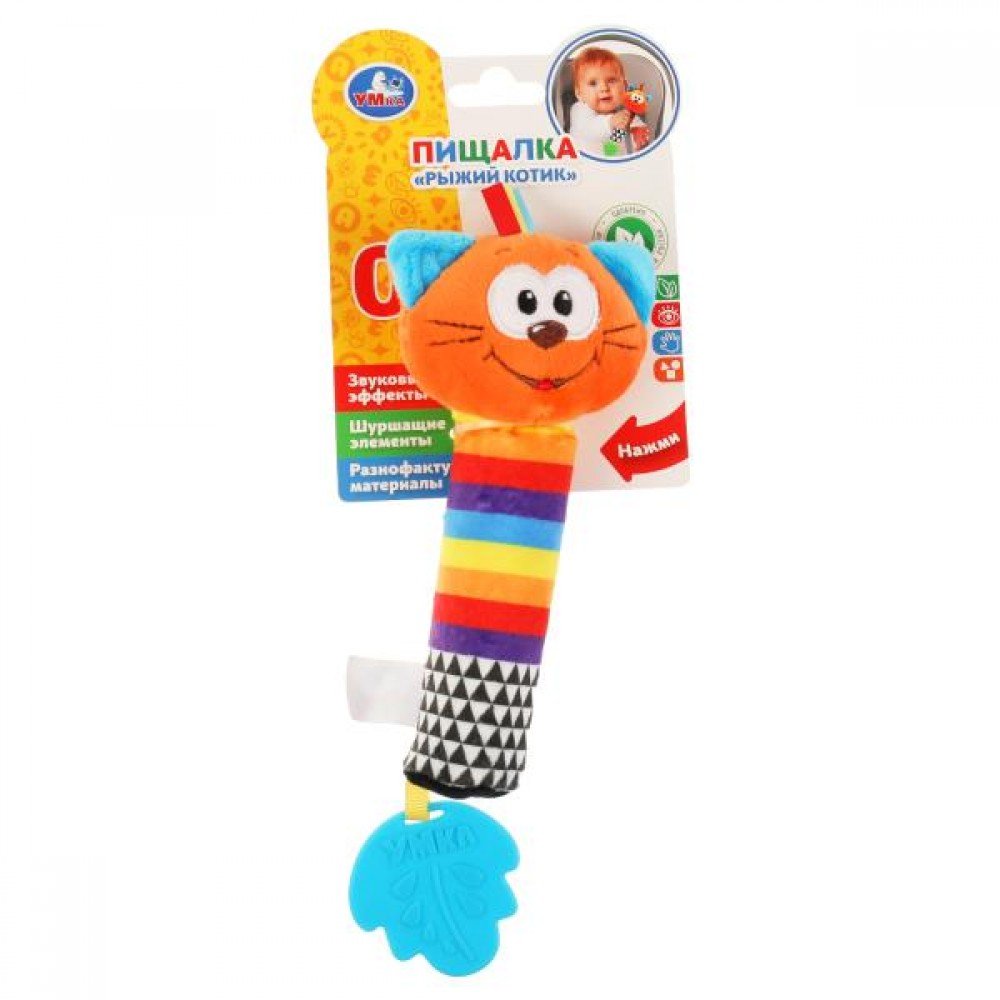 Текстильная погремушка с пищалкой «Кот» ТМ «УМка» разработана специально для самых маленьких: