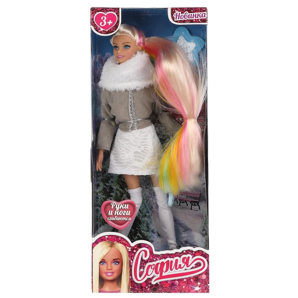 Модница София одета в элегантную серую шубку с большим воротником и белую юбку, образ дополнен изящными серьгами и сумочкой. С такой модной куклой девочке будет интересно и весело играть: благодаря тому, что руки и ноги куклы подвижны, им можно придать любое положение. У Софии длинные красивые волосы, которые хозяйка куклы сможет заплетать в разные причёски. Детально проработанный дизайн игрушки вдохновит девочку на новые игровые сюжеты.