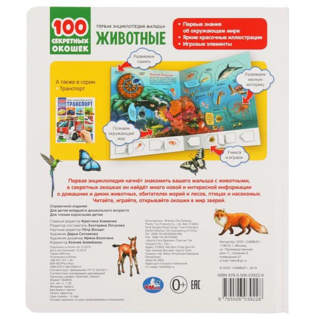 Первая энциклопедия малыша «Животные» из серии «100 секретных окошек» ТМ «УМка» станет прекрасным обучающим подарком для маленького любознайки: