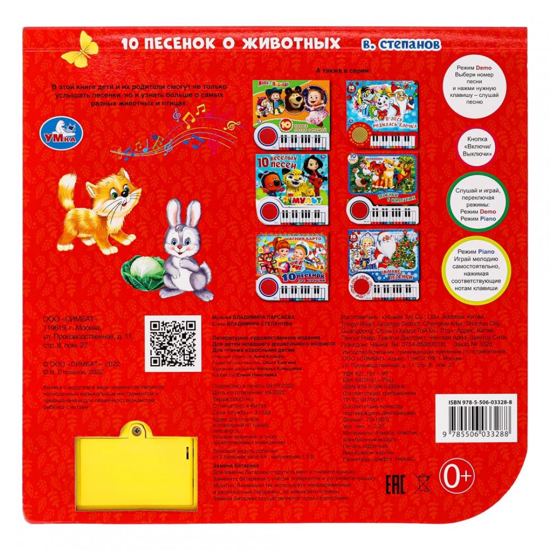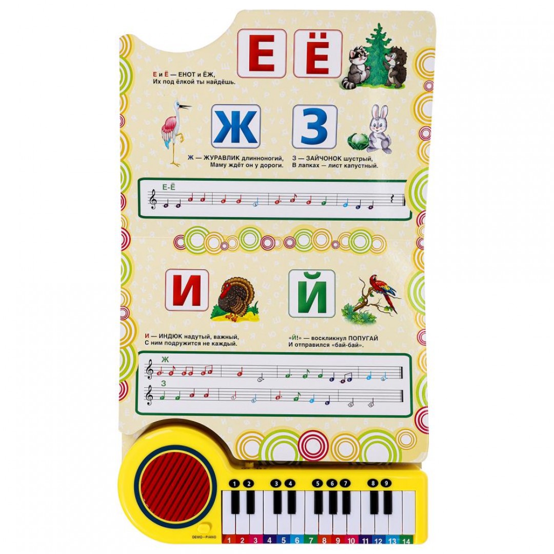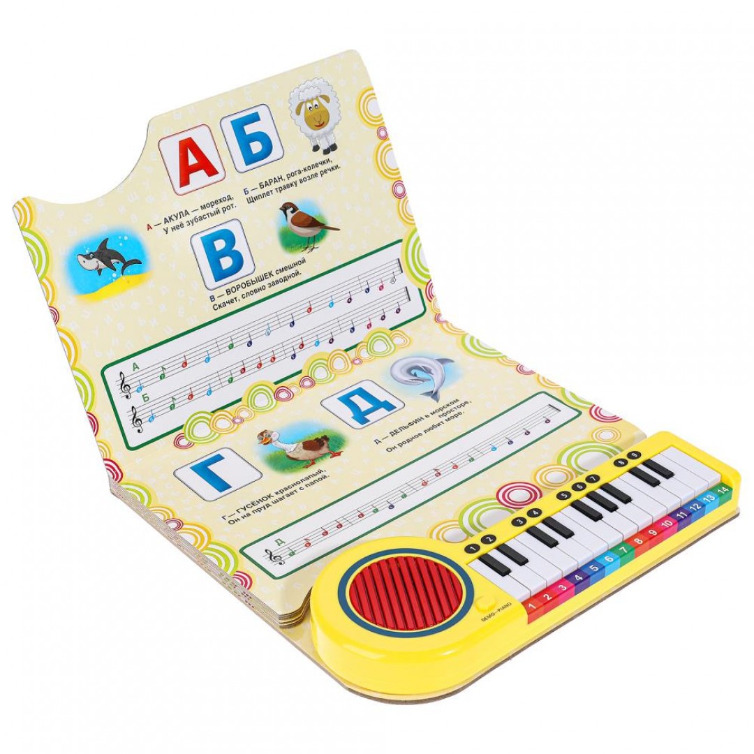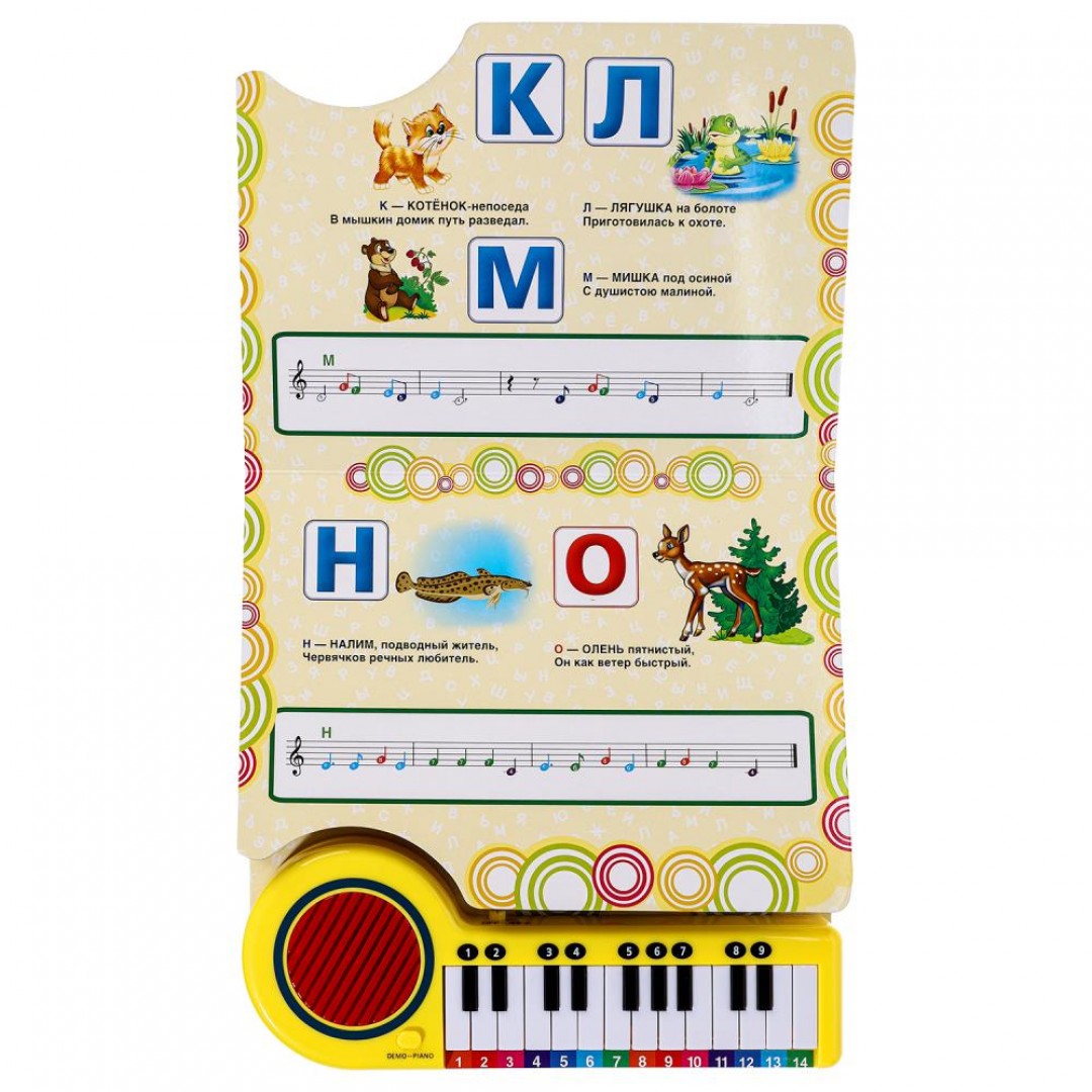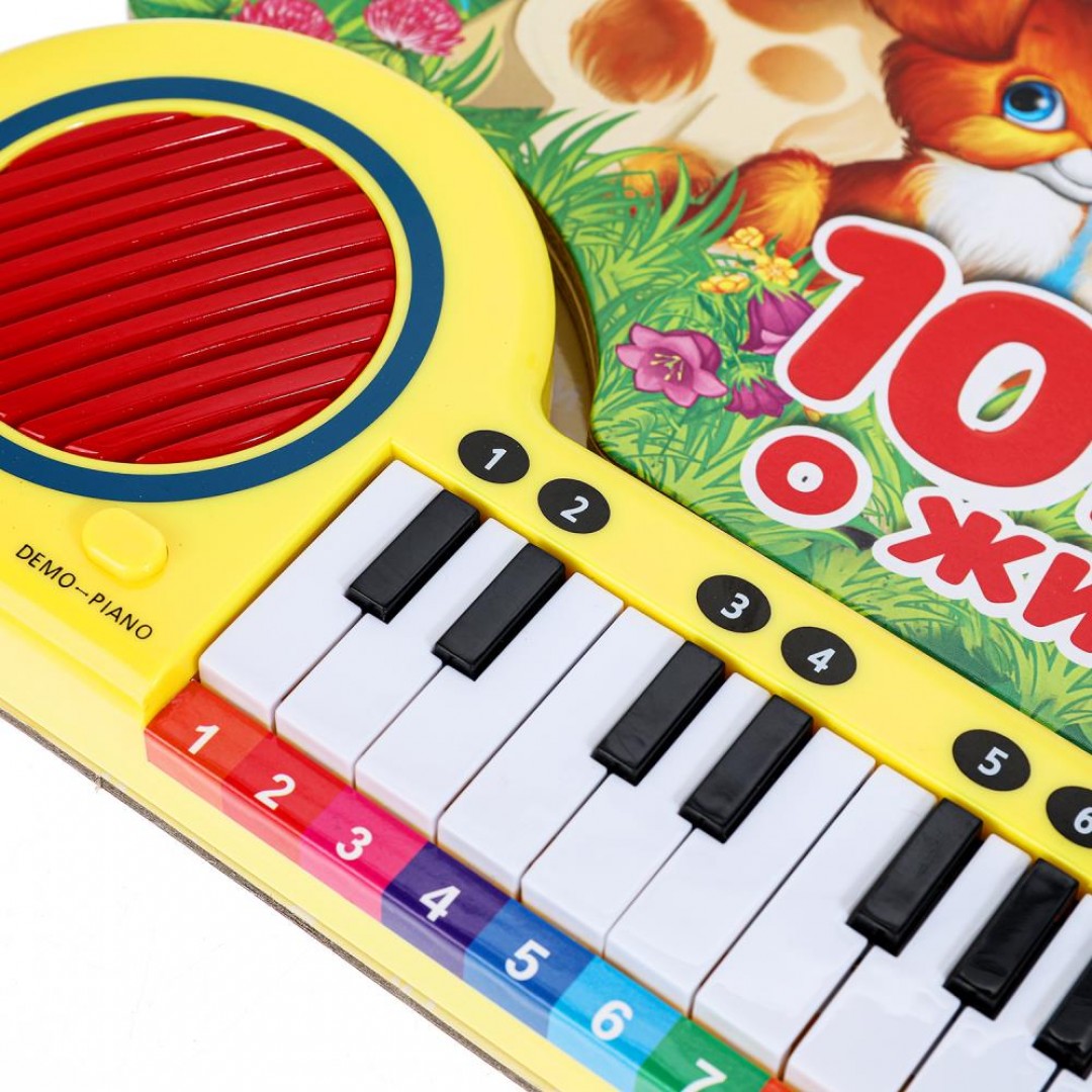 На каждой страничке это занимательной книги ребёнка ждут яркие иллюстрации, стихи известного детского автора Владимира Степанова и ноты к песенкам. При нажатии на кнопку слева от клавиш происходит переключение на режим проигрывания песен, при втором нажатии - переключение на пианино. В режиме пианино маленький музыкант, нажимая на клавиши, сможет наиграть по нотам-подсказкам песенки из книги или придумать свои собственные мелодии. Книга сделана из плотного картона, поэтому мамы могут не опасаться, что ребёнок порвёт странички.