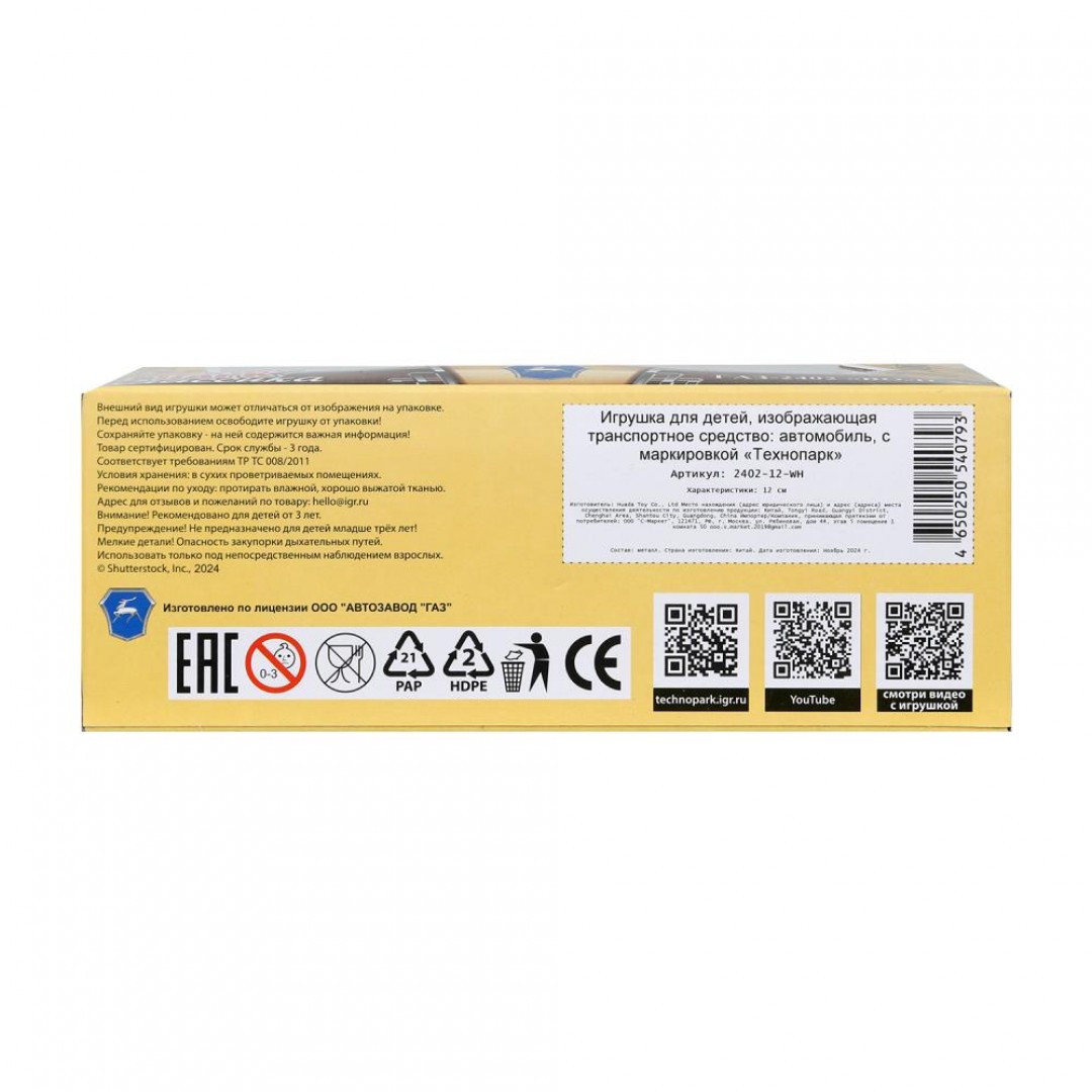 392037 Машина металл ГАЗ-2402 "ВОЛГА" 12 см, двери, багаж, инерц, белый, кор. Технопарк в кор.2*36шт