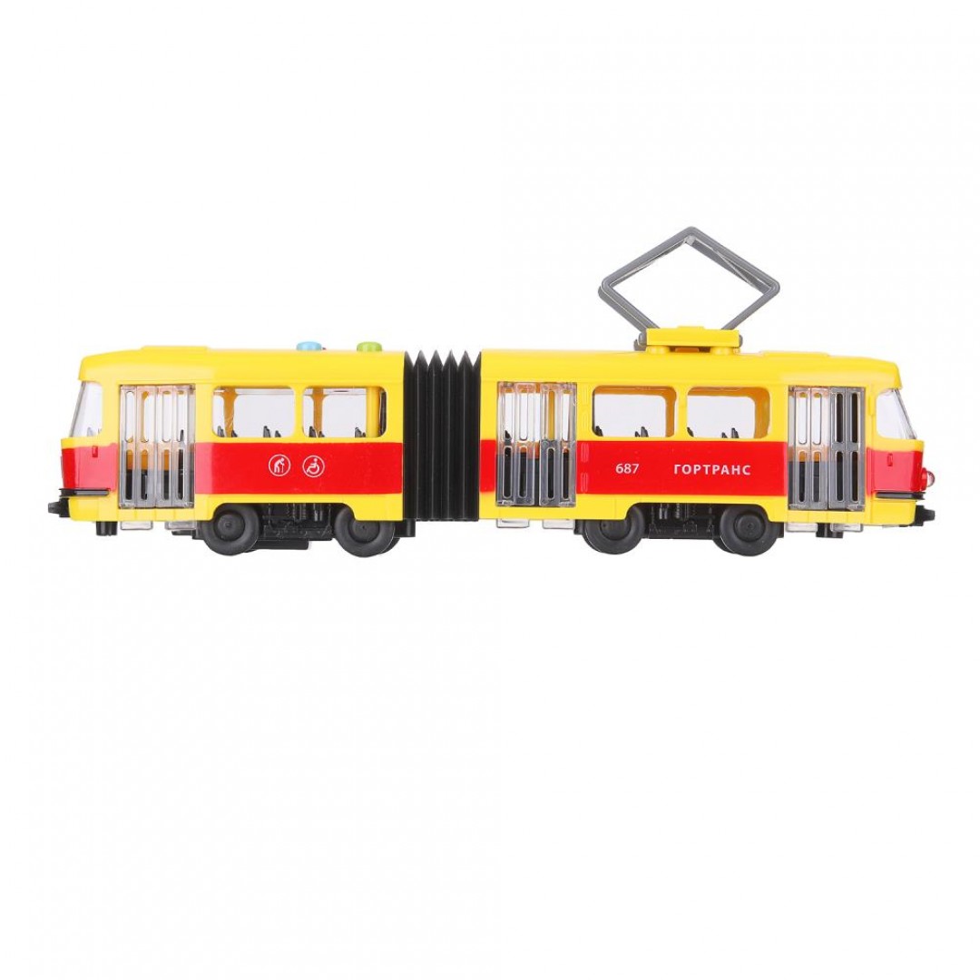 - инерционный механизм (поставьте трамвай на ровную поверхность, потяните за корпус назад, отпустите и она начнёт быстро двигаться вперёд)