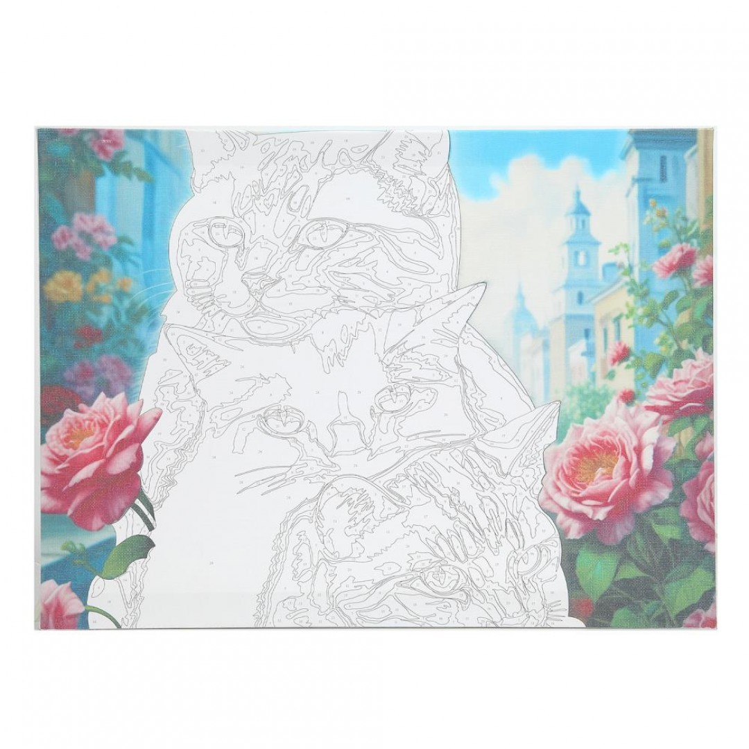 394337 Холст на подрамнике 30*40 см с частичным заполнением, три кота в розах МУЛЬТИ АРТ в кор.24шт