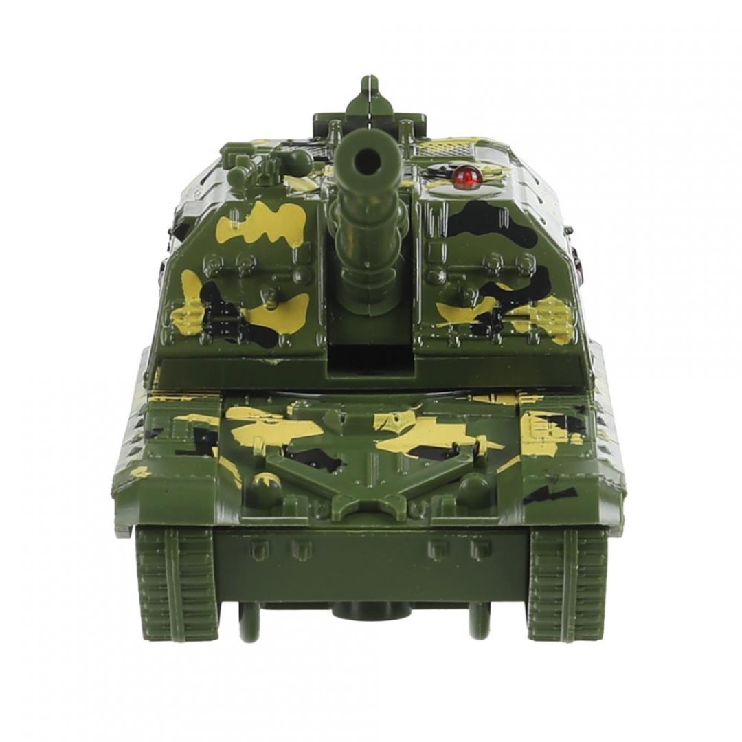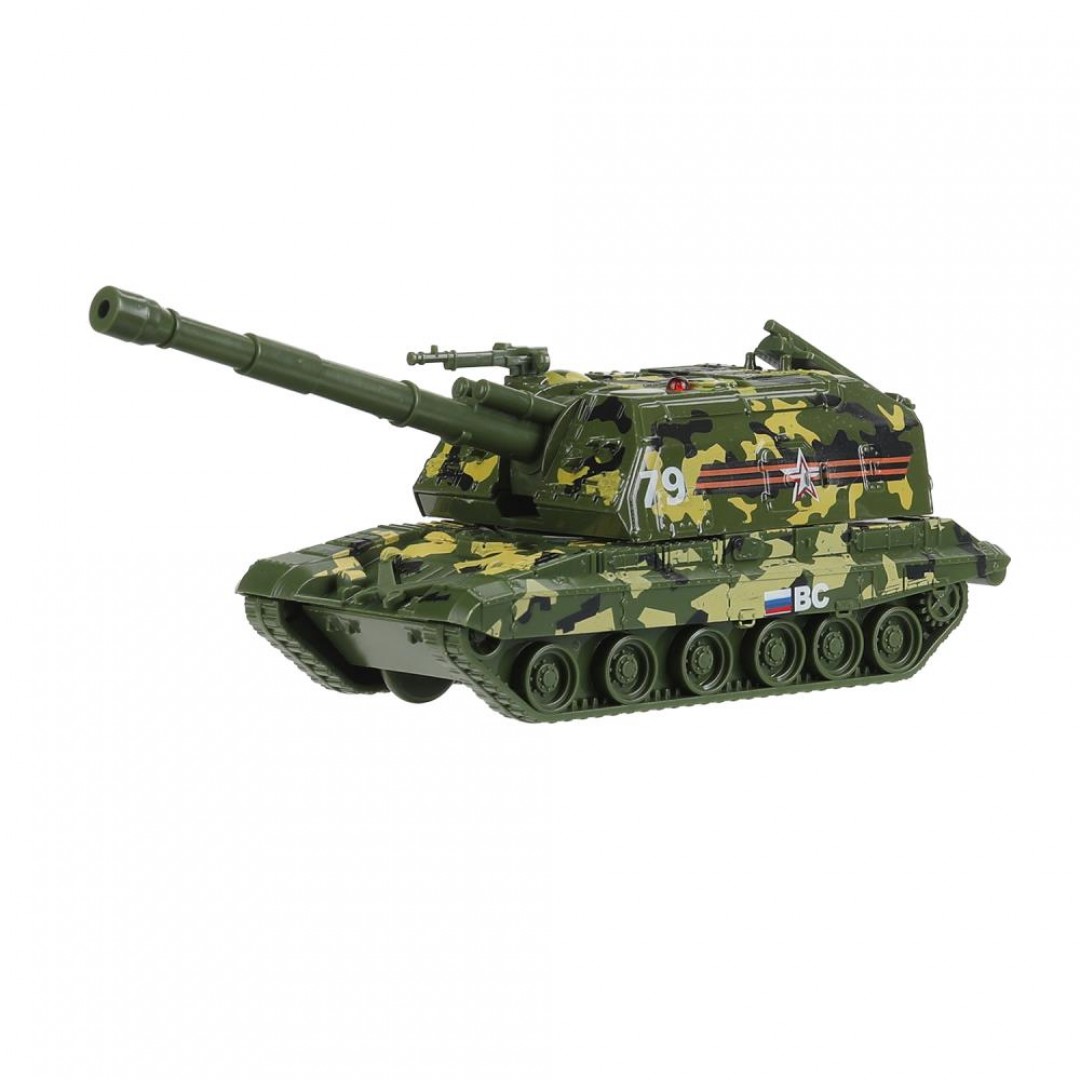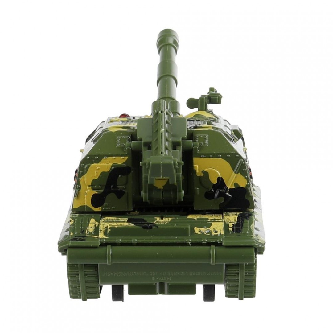 394349 Модель металл свет-звук МСТА-ГАУБИЦА 12 см, вращ.баш, инерц, камуф, кор. Технопарк в кор.2*24шт