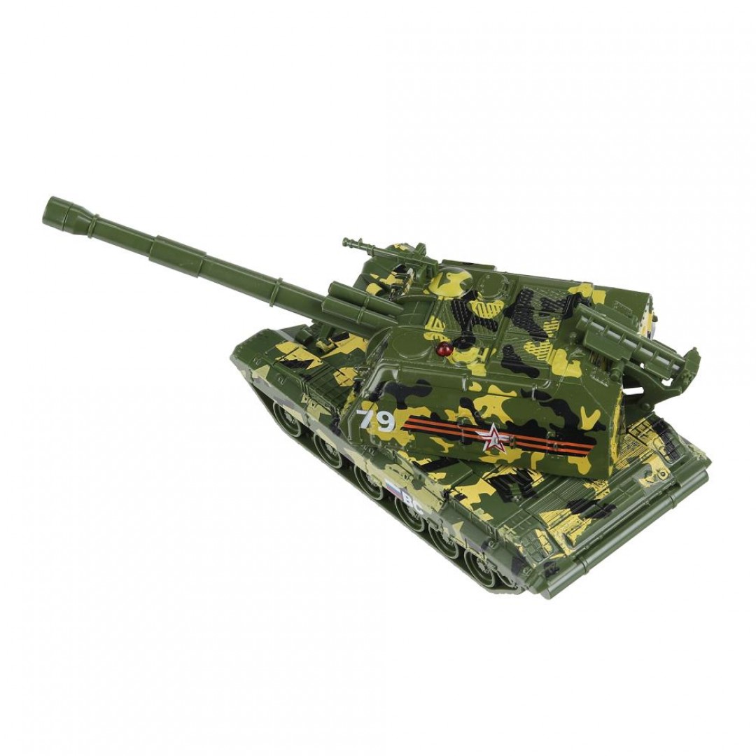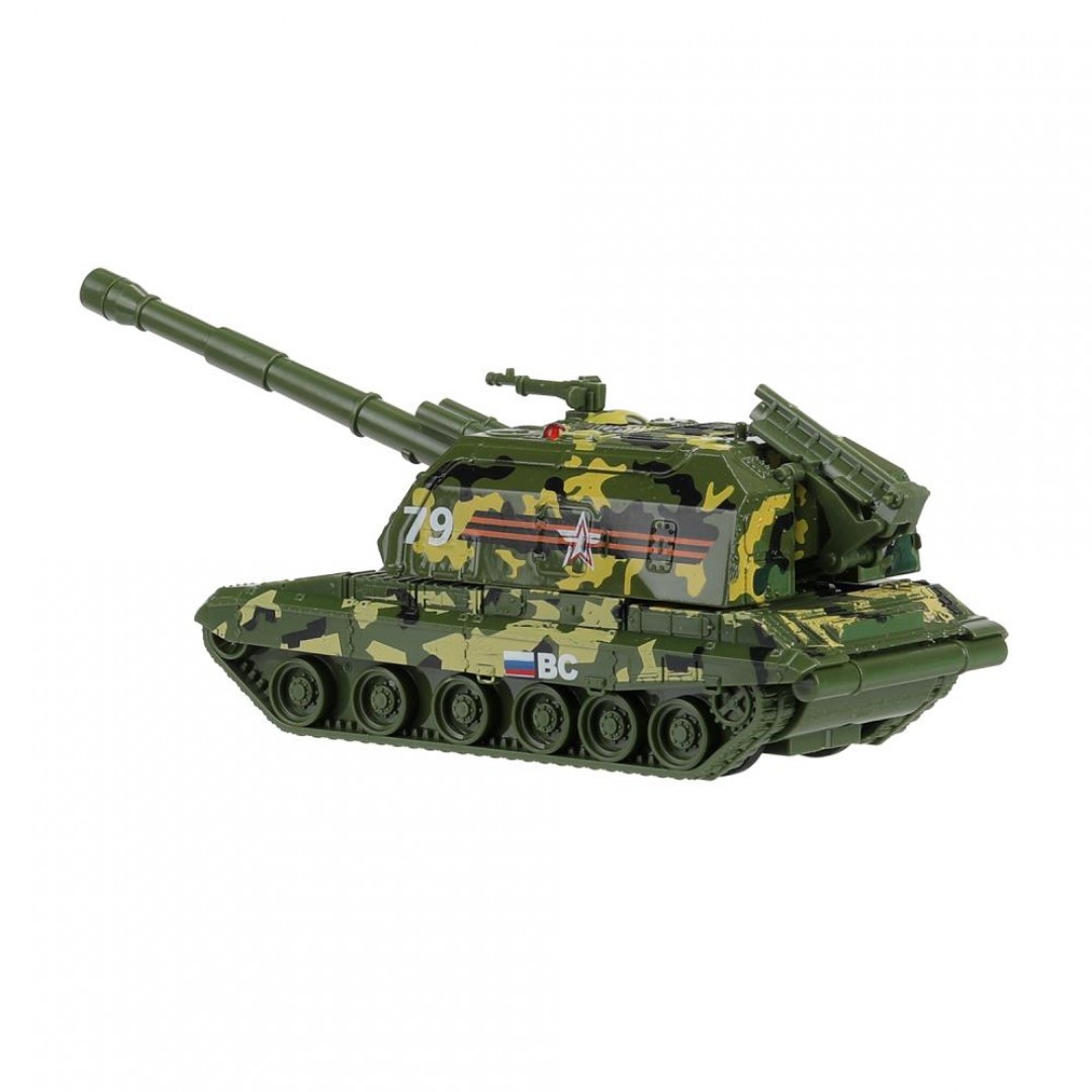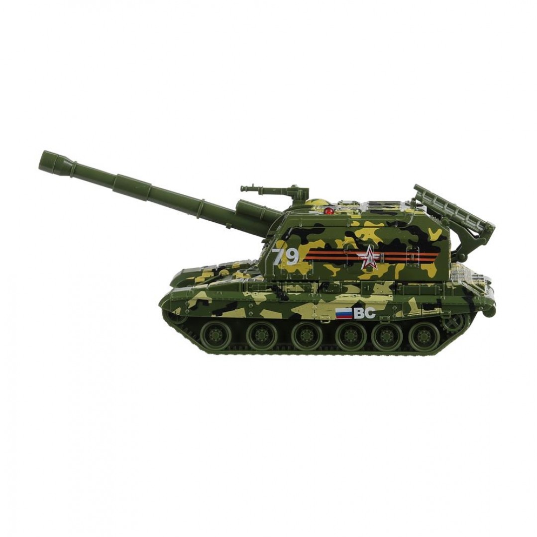 394349 Модель металл свет-звук МСТА-ГАУБИЦА 12 см, вращ.баш, инерц, камуф, кор. Технопарк в кор.2*24шт