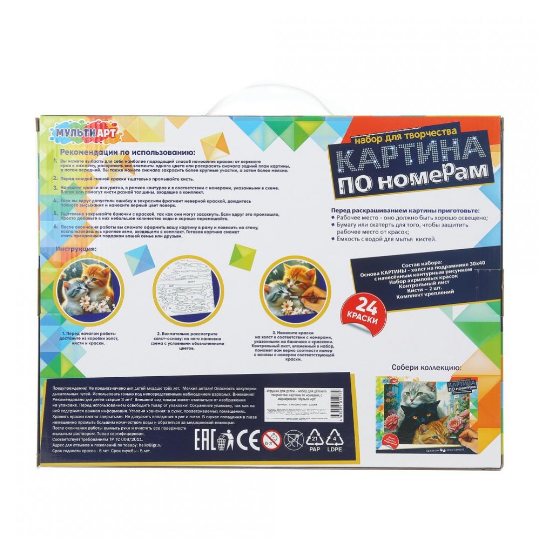 Набор для творчества - картина по номерам «Котики» ТМ «Мульти Арт» - отличный подарок для маленького художника.