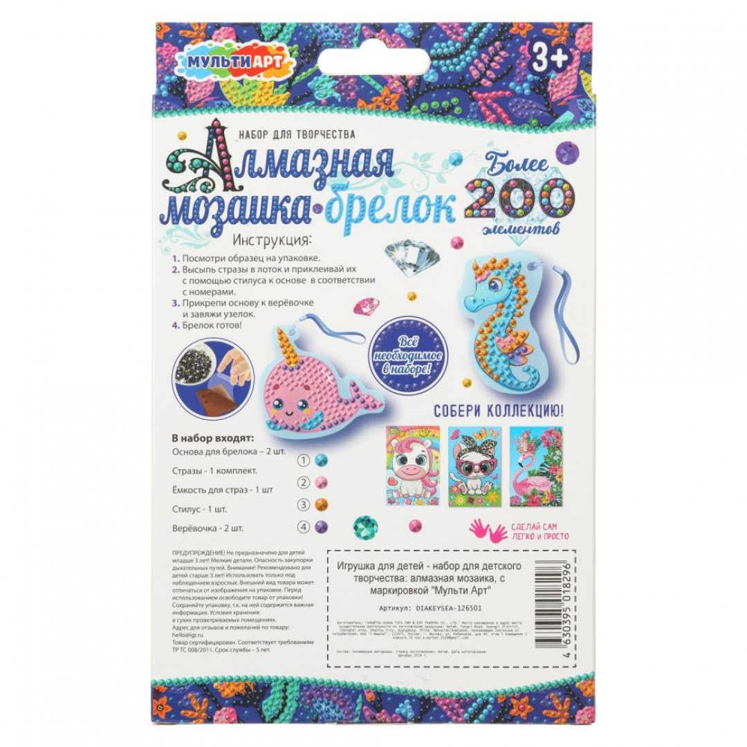Набор для детского творчества – брелоки из алмазной мозаики «Морские обитатели» ТМ «Мульти Арт» — отличный подарок для ребёнка, который будет способствовать развитию его творческих способностей.
