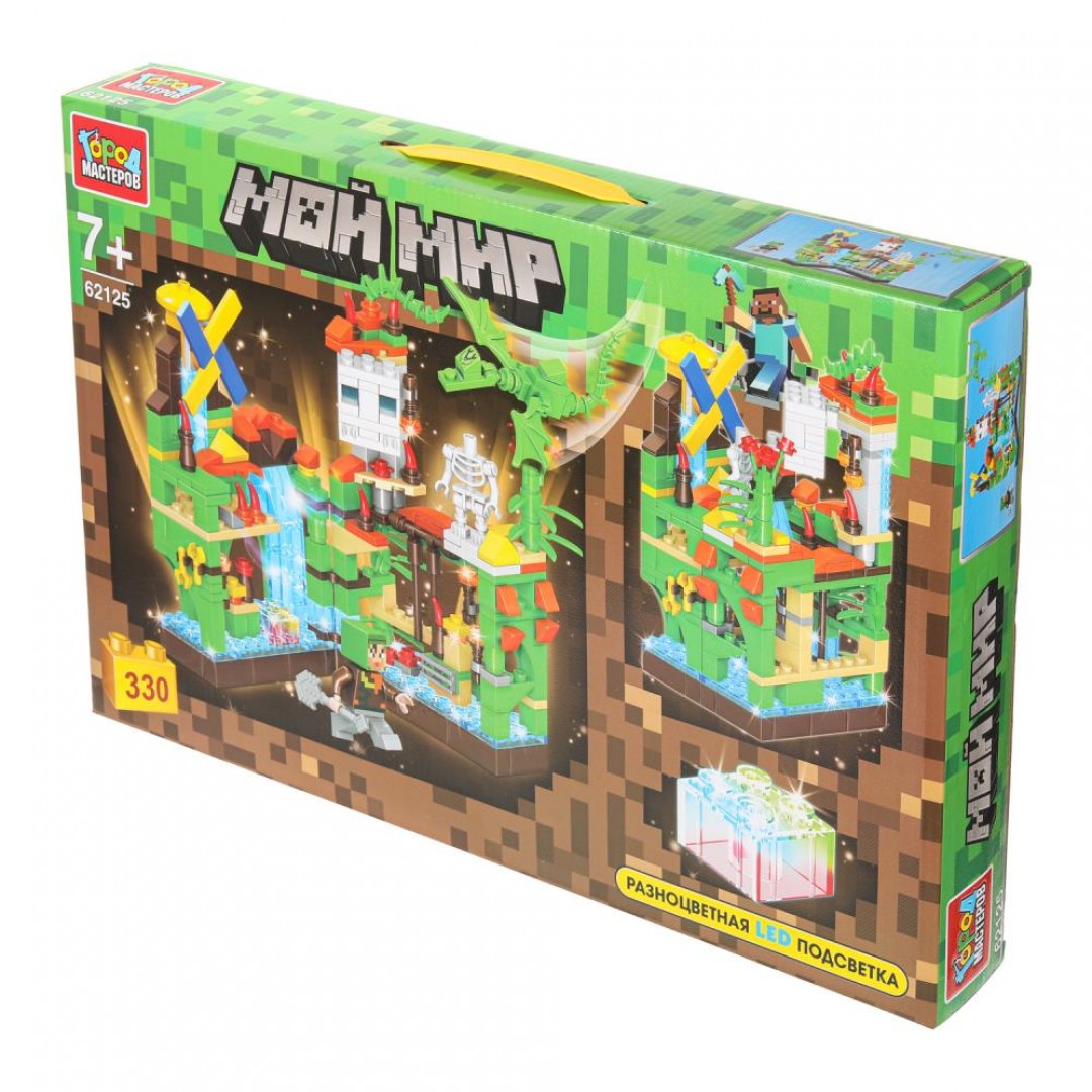 С помощью этого занимательного конструктора ребёнок может собрать красочную подводную сцену в тематике популярной компьютерной игры. Светящийся элемент обеспечивает эффектную подсветку собранной модели и делает игровой процесс более интересным, особенно в тёмное время суток. В серию входят разные виды наборов, соединив которые, можно создать собственный квадратный мир и расширить варианты игры.