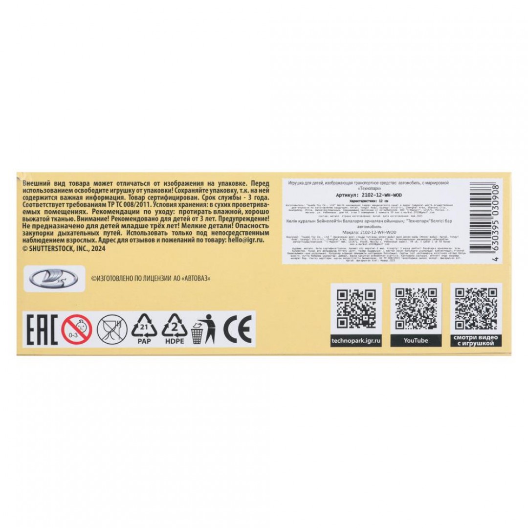 405081 Машина металл ваз-2102 12 см, двери, багаж, инер, белый, кор. Технопарк в кор.2*36шт
