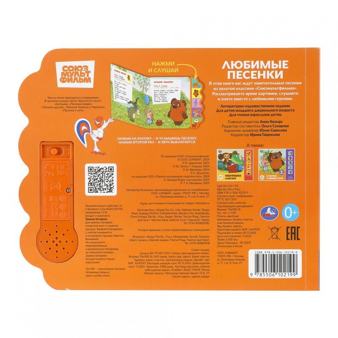 Музыкальная книга «Любимые песенки» ТМ «УМка» станет прекрасным подарком для маленьких поклонников мультфильмов студии «Союзмультфильм»: