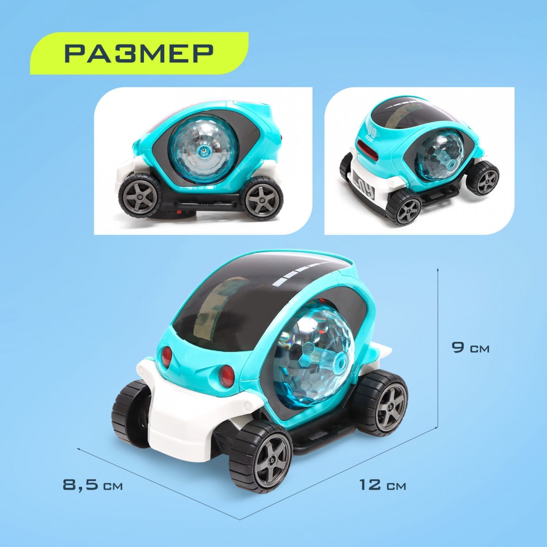 АВТОГРАД Машина "Диско", диско-шар, свет и звук, работает от батареек, цвет бирюзовый 7816760