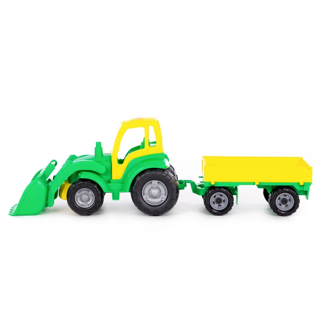 Большой трактор "Чемпион" от русского бренда Полесье придется по душе юным строителям. Игрушку отличают простой, но реалистичный дизайн, яркая расцветка и довольно крупные размеры - трактор почти пол метра в длину! Изделие прекрасно отмывается после игр на улице, изготовлено оно из безопасного пищевого пластика. Главная игровая деталь "Чемпиона" - большой ковш, которым удобно сгребать песок.