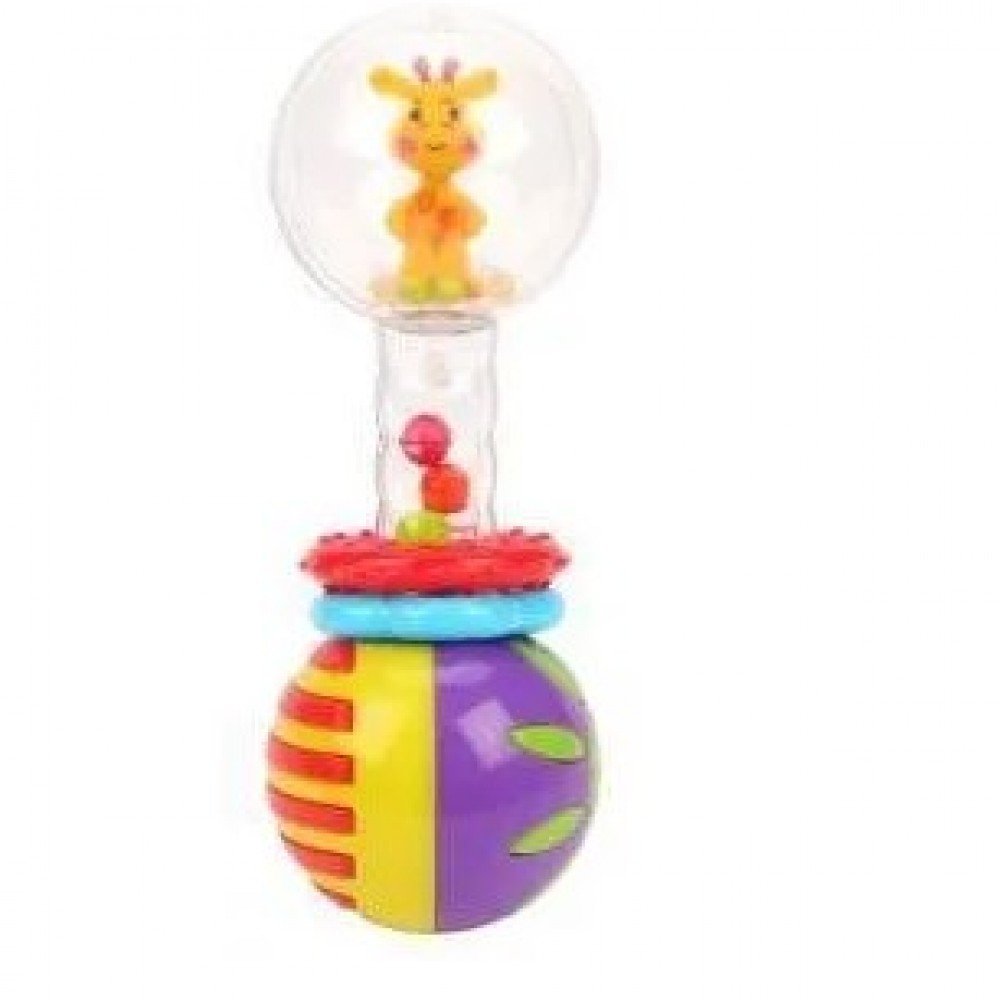 В самом раннем возрасте маленькие дети активно познают и изучают окружающий мир через сенсорное восприятие. Функциональная погремушка «Звонкая гантелька. Жирафик» поспособствует развитию у малыша зрительных и слуховых навыков, тактильных ощущений и хватательного рефлекса. Игрушка обладает совсем небольшим весом - крохе будет легко держать её в своей маленькой ладошке. Посередине гантельки имеются 2 фигурных колечка, которые можно перебирать пальчиками. Внутри погремушки - очаровательная фигурка маленького жирафика и разноцветные шарики, которые очень весело гремят при встряхивании.