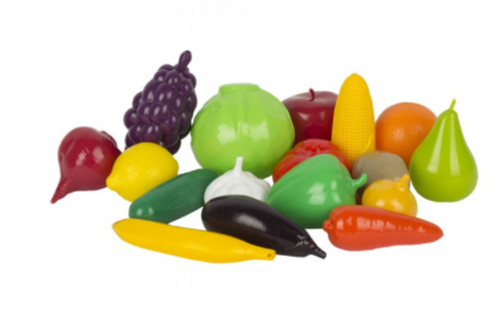 Игрушка изготовлена из высококачественных материалов. Комплектация : (виноград, лимон, апельсин, банан, груша, яблоко, огурец, перец, морковь, свекла, кукуруза, картофель, баклажан, помидор, лук, чеснок, капуста. Игровой набор «Фрукты и овощи» — набор из пластмассы. Изделие проверено на соответствие требованиям технических регламентов Таможенного Союза и имеет сертификацию ЕАС.