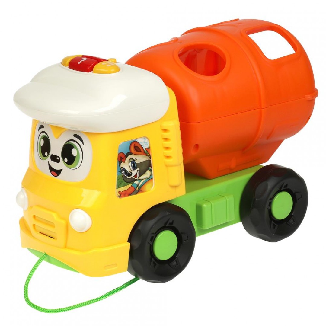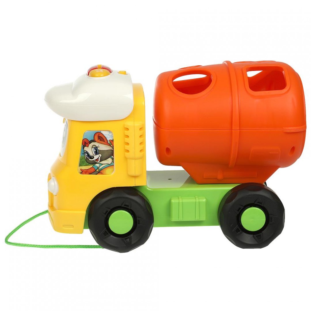 Эта яркая музыкальная игрушка, выполненная в виде бетономешалки непременно понравится малышу. Играя с сортером, главной задачей ребёнка будет правильно подобрать блок к соответствующему отверстию. Ребёнок будет с удовольствием играть с сортером, слушая любимые песенки, интересные стихи и забавные звуки.