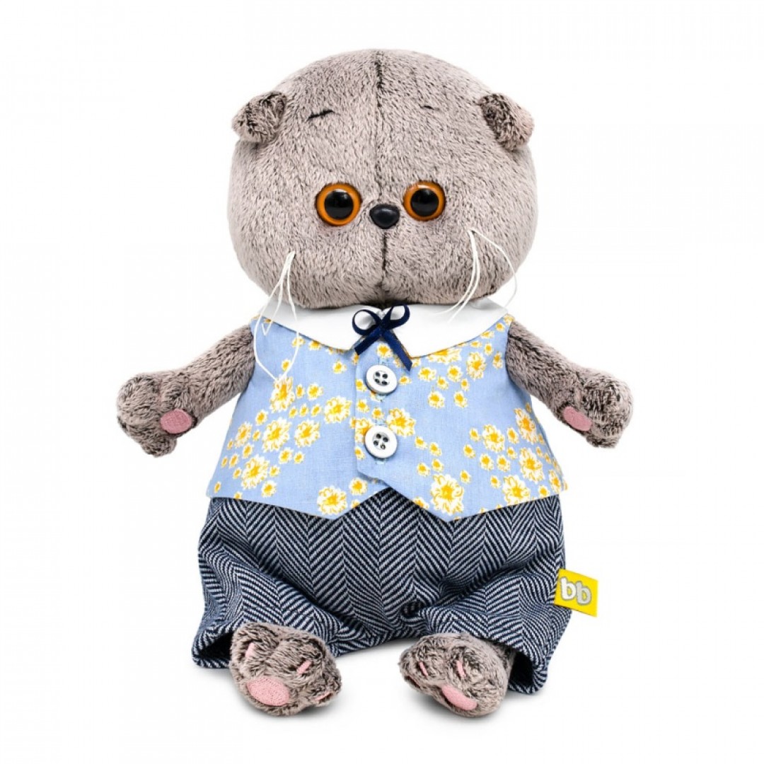 Кот Басик BABY в жилете в цветочек и брючках 20 см