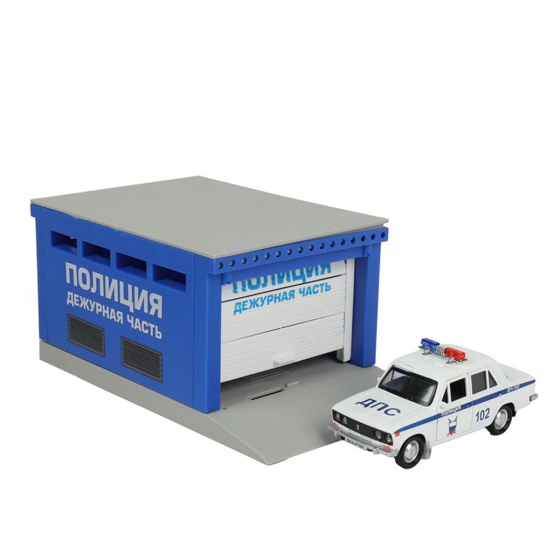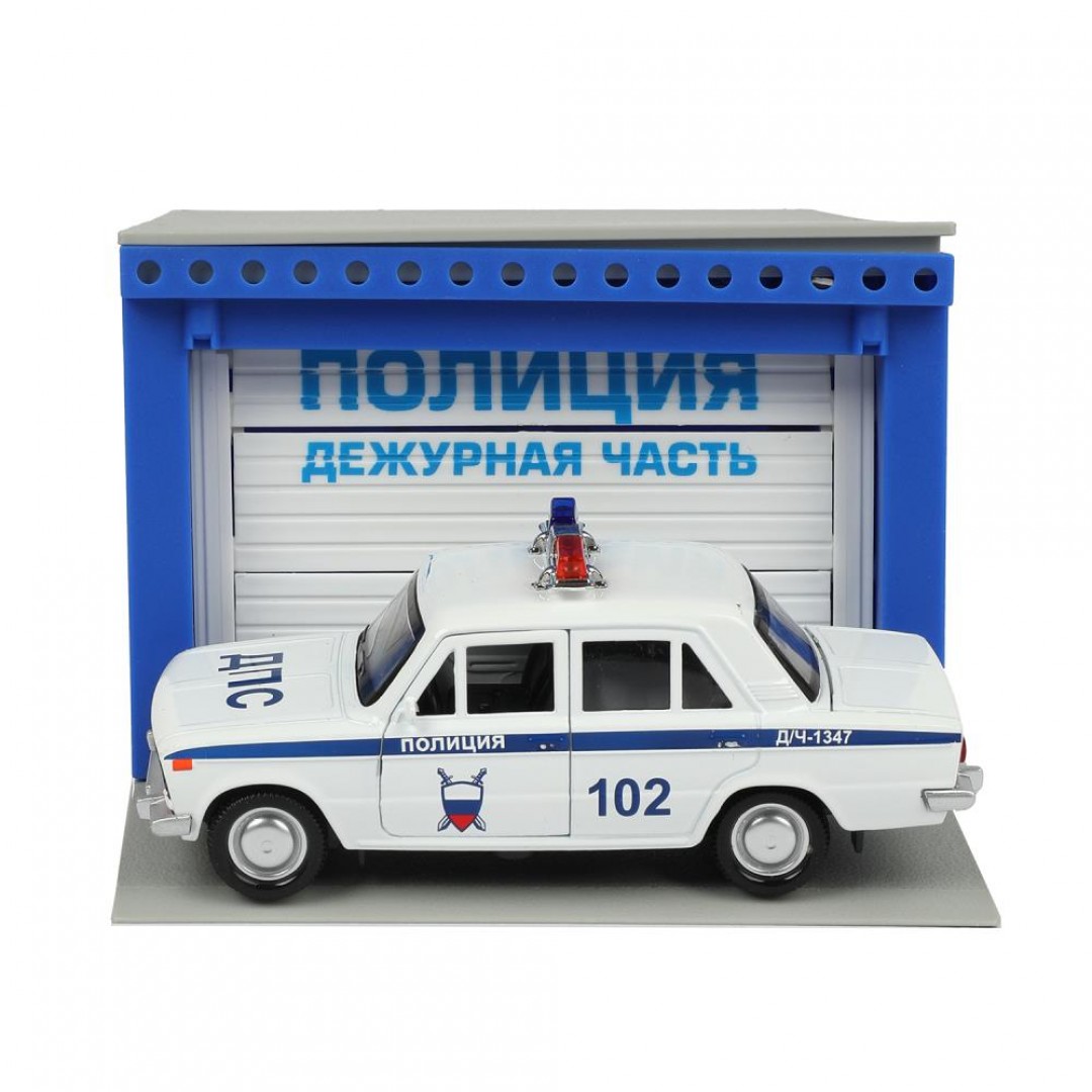 390957 Модель пластик ГАРАЖ ПОЛИЦИЯ 20,5 см, ваз 2106, син, кор. Технопарк в кор.24шт