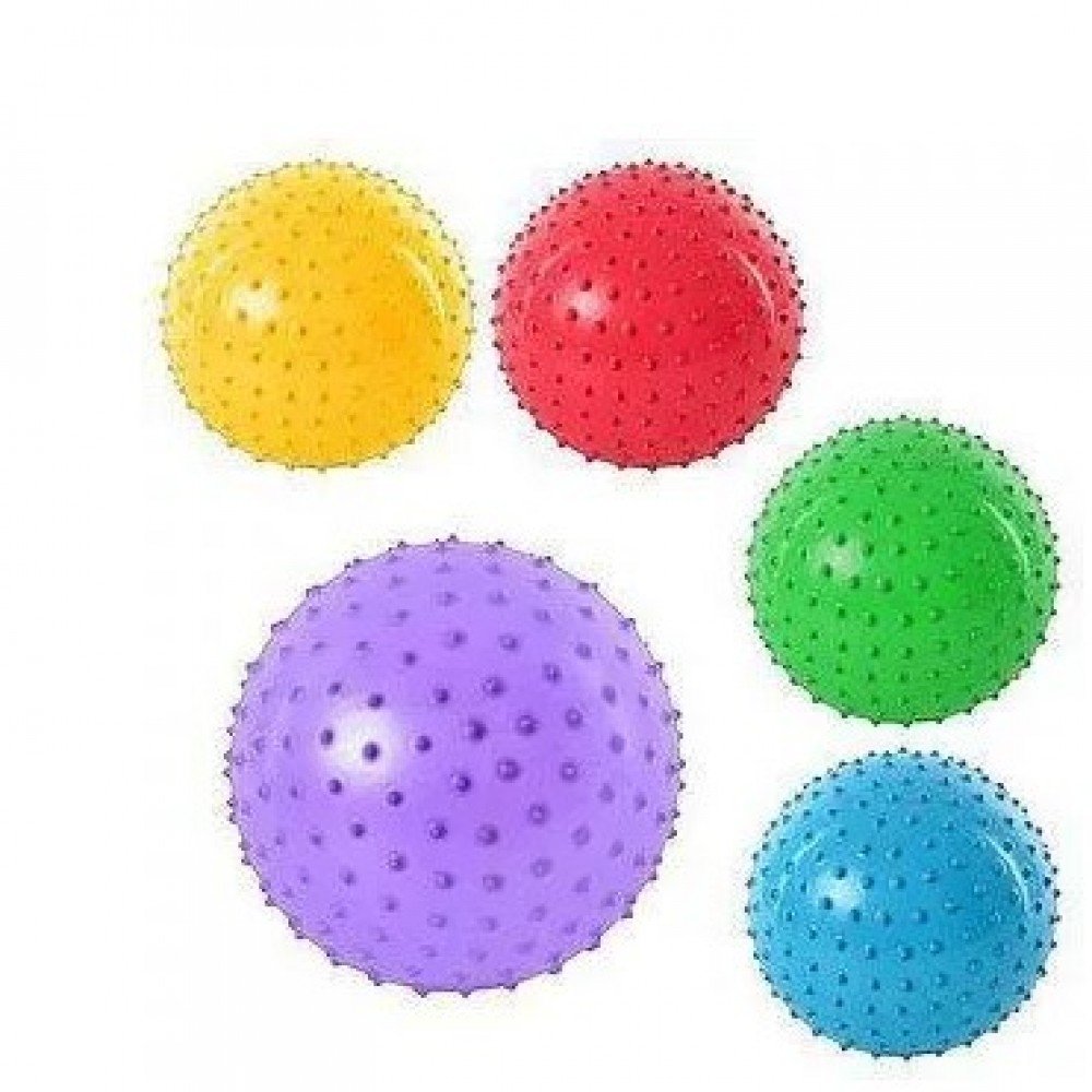 Мяч массажный для детского фитнеса. Диаметр мяча составляет 18 см. Поверхность мяча — с выпуклыми "шишечками". Представлен в ассортименте в разных цветовых вариациях. Материал изготовления: резина.