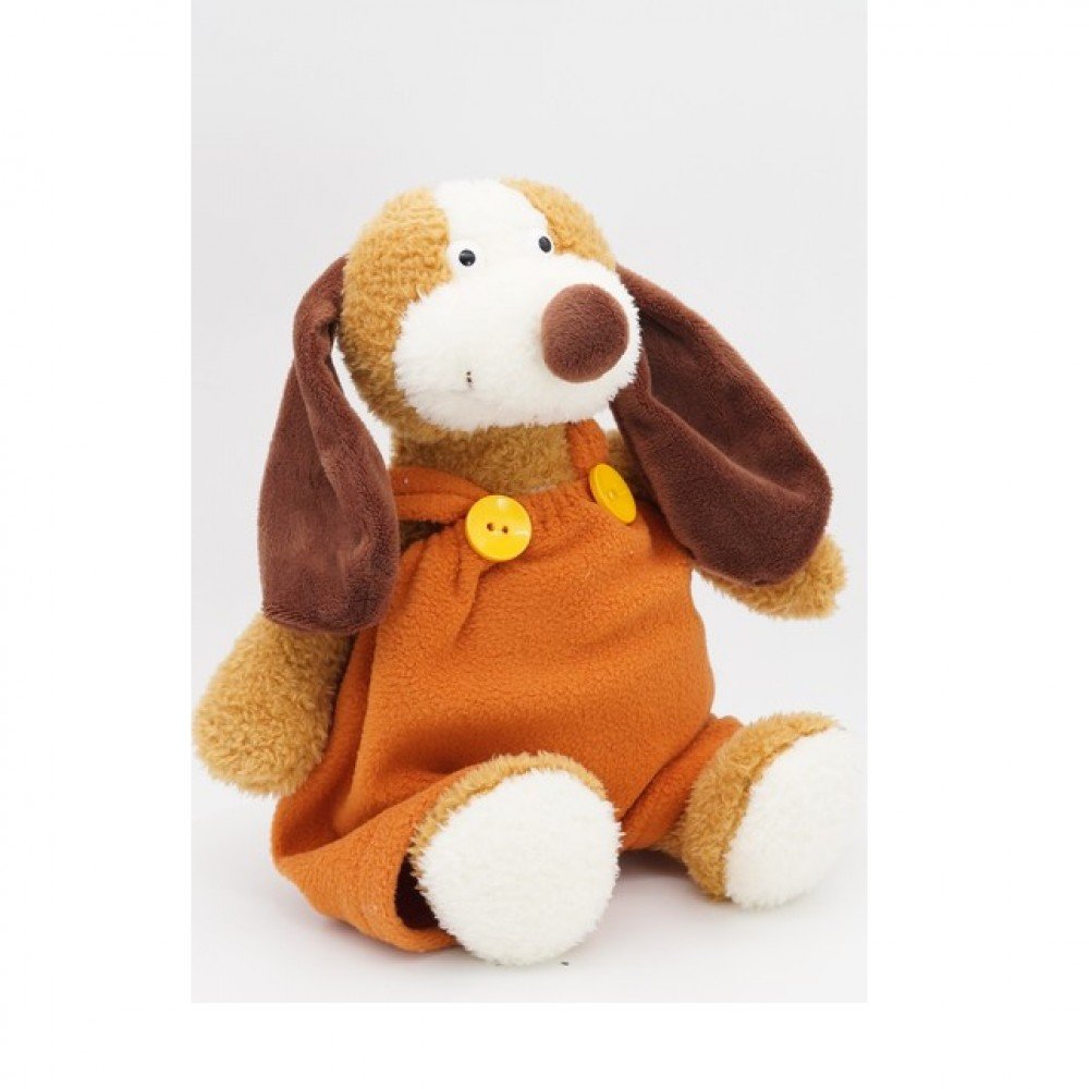 Мягкая игрушка Пес Барбос, с шариками для мелкой моторики в кирпичном комбинезоне флис, 20/28 см 097