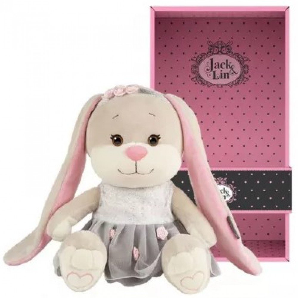 Мягкая Игрушка Зайка в Сером Платье с Розовыми Вставками 25 см