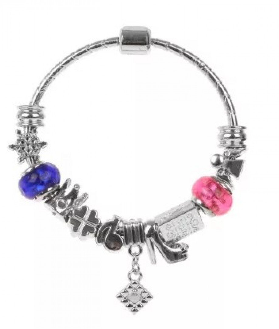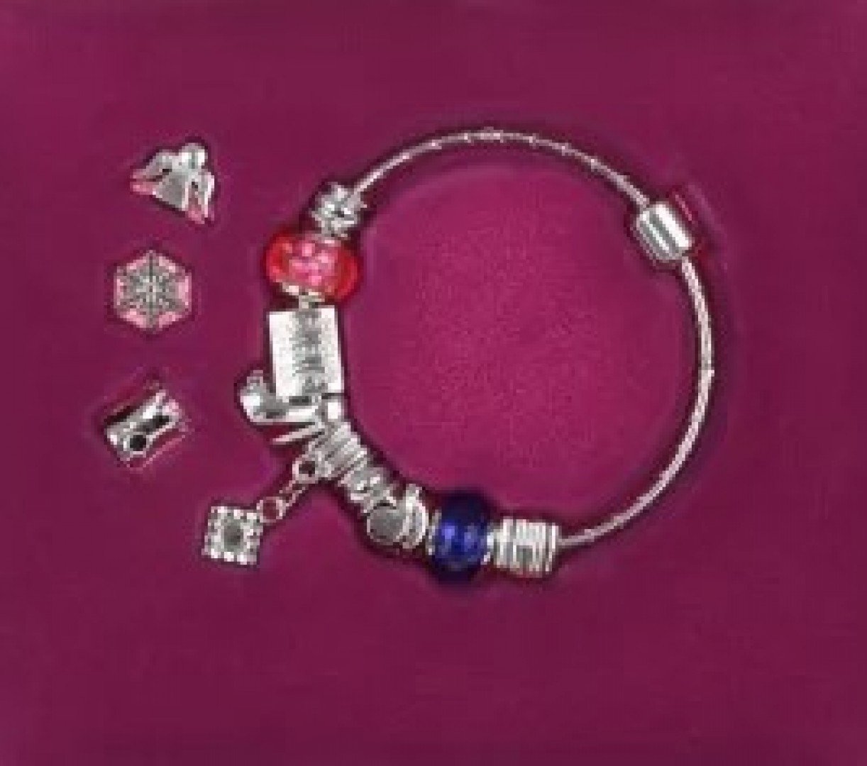 Этот набор предназначен для создания изящного украшения с шармами своими руками. В комплекте — 1 серебристый браслет-основание и 12 эффектных шармов. Девочка может украсить браслет какими-то определёнными понравившимися шармами, а может использовать все шармы сразу в любой угодной последовательности.