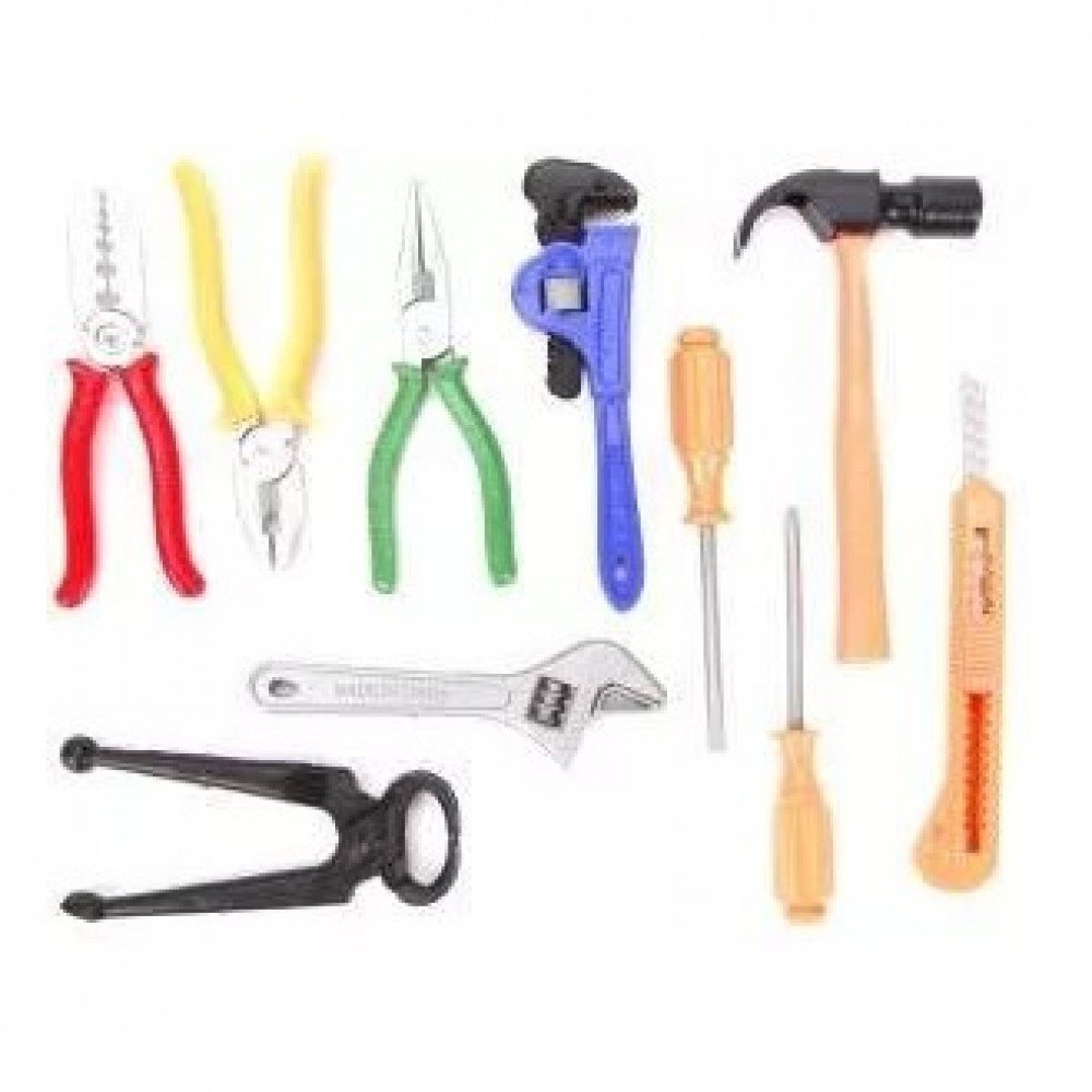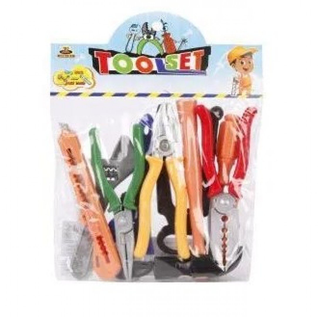 Набор инструментов предназначен для сюжетно-ролевых игр, способствующих развитию ребёнка. В комплекте - 10 предметов, среди которых мальчик найдёт молоточек, крестовую и плоскую отвёртки, 3 пары кусачек, струбцину, плоскогубцы, разводной ключ и выдвижной безопасный ножик.