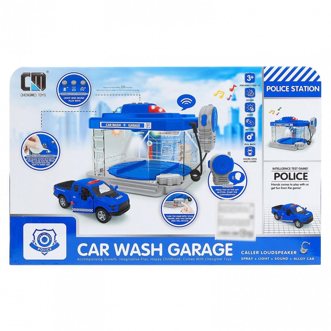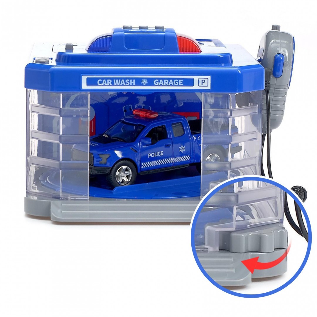 Этот уникальный игровой набор идеально сочетает в себе парковку, автомойку и элементы полицейского участка. Позволяет ребёнку окунуться в мир захватывающих приключений полицейского!