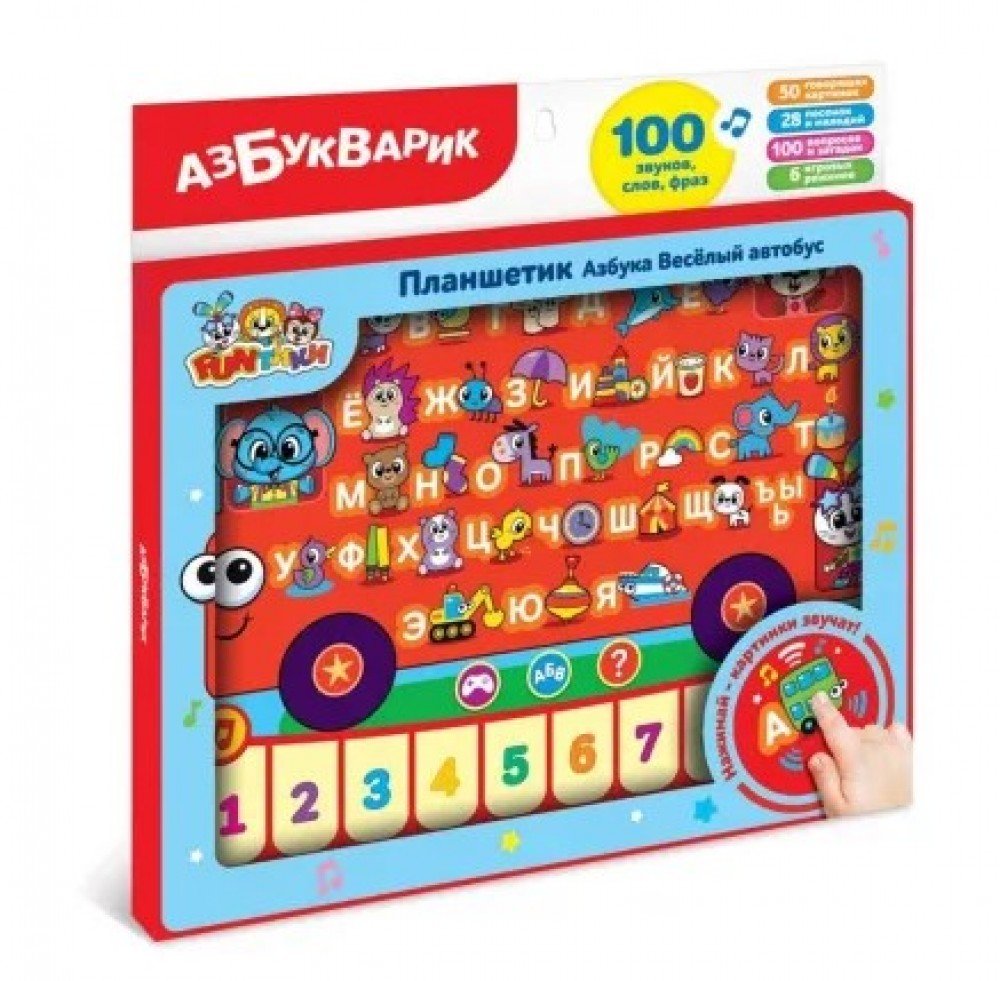 С новым планшетиком «Азбука Весёлый автобус» скучать не придется! Ребенку понравится изучать буквы с говорящими картинками: А – Автобус, В – Вертолет, Е – Ежевика, всё просто! Учить буквы можно в двух режимах: «Буквы» и «Звуки». Познавательные песенки, 100 вопросов и загадок в стихах помогут проверить знания и сделают обучение более увлекательным! А в игре «Волшебное пианино» ребенок сможет сам сыграть 10 популярных мелодий («Каравай», «Песенка про кузнечика», «Чижик-пыжик», «Два весёлых гуся», «Калинка» и др.) и почувствовать себя настоящим музыкантом. Также в этом планшетике малыша ждет знакомство с новыми героями – Фантиками. Заюшка Зайка, Обезьянка Ириска и Слоник Слоняша порадуют детей свежим хитом «Фантики» и другими популярными детскими песенками и мелодиями («Бум-Бум», «Бибика», «Догони», «У друзей нет выходных» и др.)