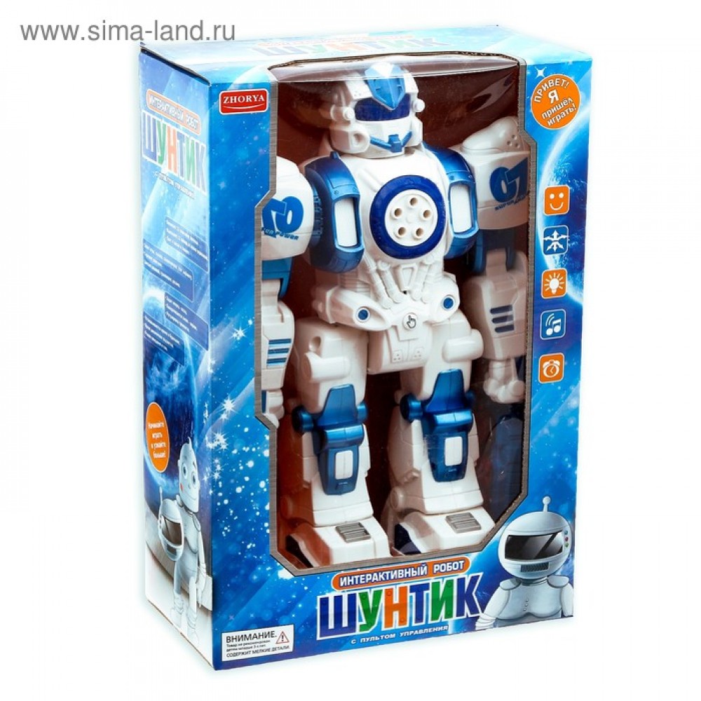Робот «Шунтик» поддерживает голосовое управление, распознаёт 23 команды. Например, «Вперёд», «Назад», «Стреляй». Игрушка умеет передвигаться во всех направлениях, петь, рассказывать сказки, говорить на русском языке, танцевать и стрелять мягкими патронами.