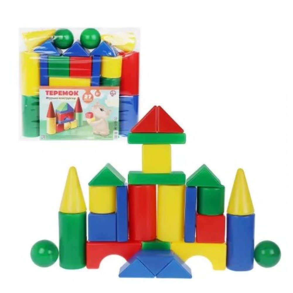 Игрушка-конструктор «Теремок» включает 27 элементов разной формы и цвета. Из них ребёнок может построить всё, что ему подскажет фантазия - это может быть домик, замок, крепость, гараж для машинок и многое другое.