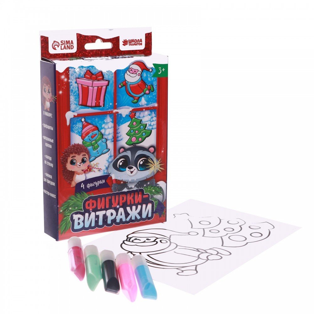 Сделать витражные картинки очень просто: наложите на трафарет плёнку, обведите его контурной краской. Немного подождите и заполните рисунок красками.