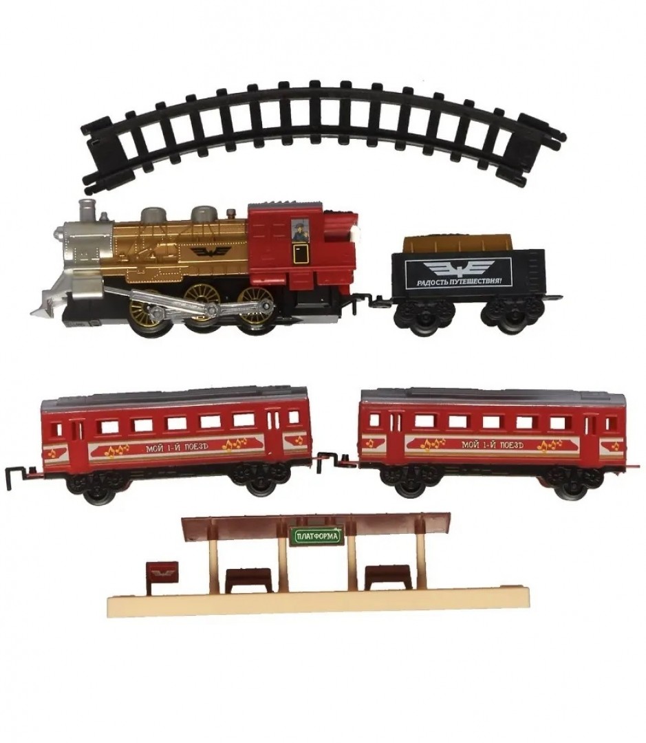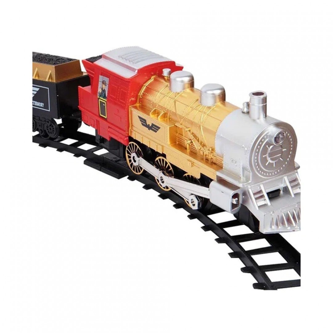 Ваш малыш начал интересоваться поездами? Тогда эта железная дорога придется ему по вкусу. Ведь она легкая при сборке, а сам локомотив выглядит очень даже реалистично! В комплекте 22 части рельс, из которых собирается железнодорожное полотно протяженностью 580 см. Также здесь 1 паровоз и 2 вагона, грузовой с углем и пассажирский. Ну и, конечно, декорации, это остановка, с лавочками и навесом. Но самое главное в том, что паровоз совсем как настоящий! При движении у него загораются прожектора, и он может выпускать из трубы дым, который, конечно, безопасен для здоровья. А еще можно включить музыку, под которую так интересно наблюдать за бесконечным движением состава! С таким набором у ребенка будет много интересных сценариев для игр, будет развиваться воображение, а также усидчивость и терпение при сборке железнодорожного полотна.
